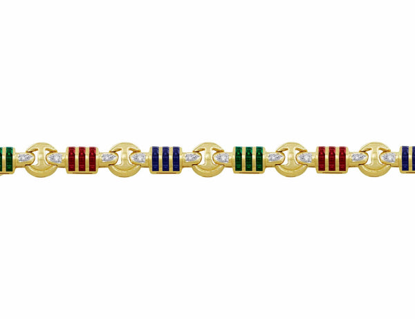 14 Karat Yellow Gold Sapphire And Diamond Bracelet - Estate