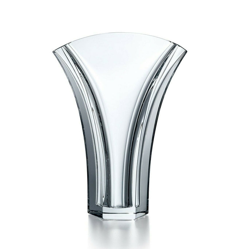 The Baccarat Gingko Vase, with its sweeping uninterrupted fan silhouette, is a crystal rendition of the Chinese Gingko Biloba leaf. New with no box.